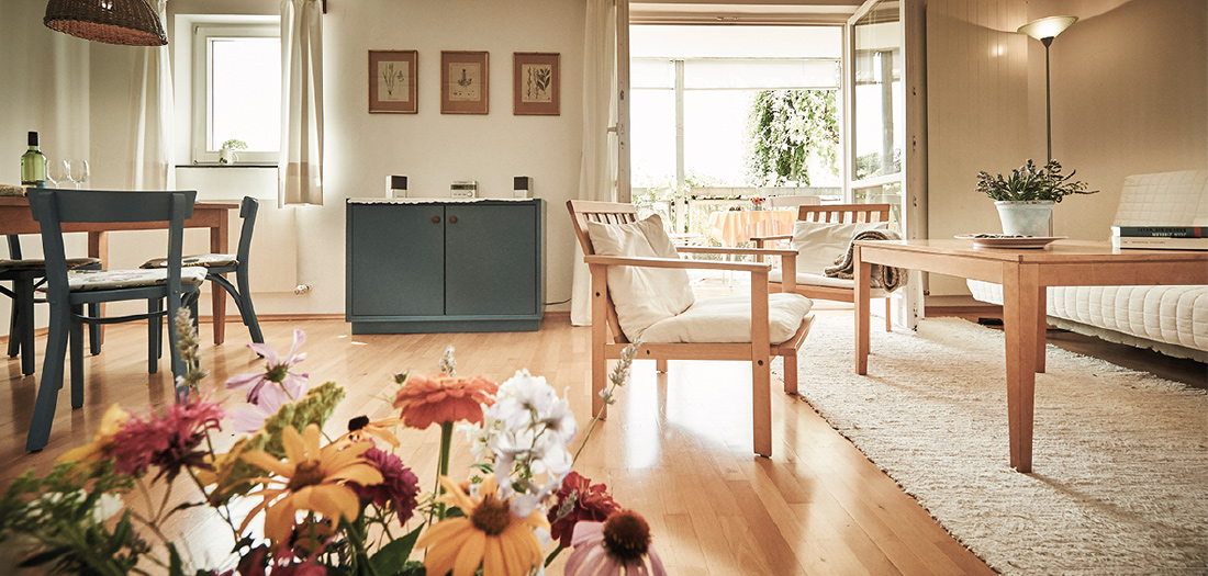 Das Landhaus bietet 4 charmante Ferienwohnungen jeweils mit Südbalkon und ein idyllisches Gartenhaus mit eigener Terrasse.